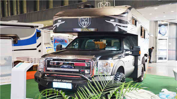 本次展會,廣泰精心準備了純碳纖維福特越野房車和曼底盤改制的全地形越野房車兩款最新產品。純碳纖維福特越野房車填補了國內該款房車領域的空白,由廣泰獨家研發制作的六面一體碳纖維艙體和福特F350底盤優良的操控性和越野性相結合,強強相加在專業越野房車領域獨樹一幟,得到了觀展的專業用戶的高度評價,市場反映良好。曼底盤改制的全地形越野房車采用了廣泰獨家研發長達兩年時間的柔性懸架技術,利用有限元分析及應力測試準確測量副梁的最小應力點,使箱體受應力最小以保護箱體在通過惡劣路況時不受扭力破壞。